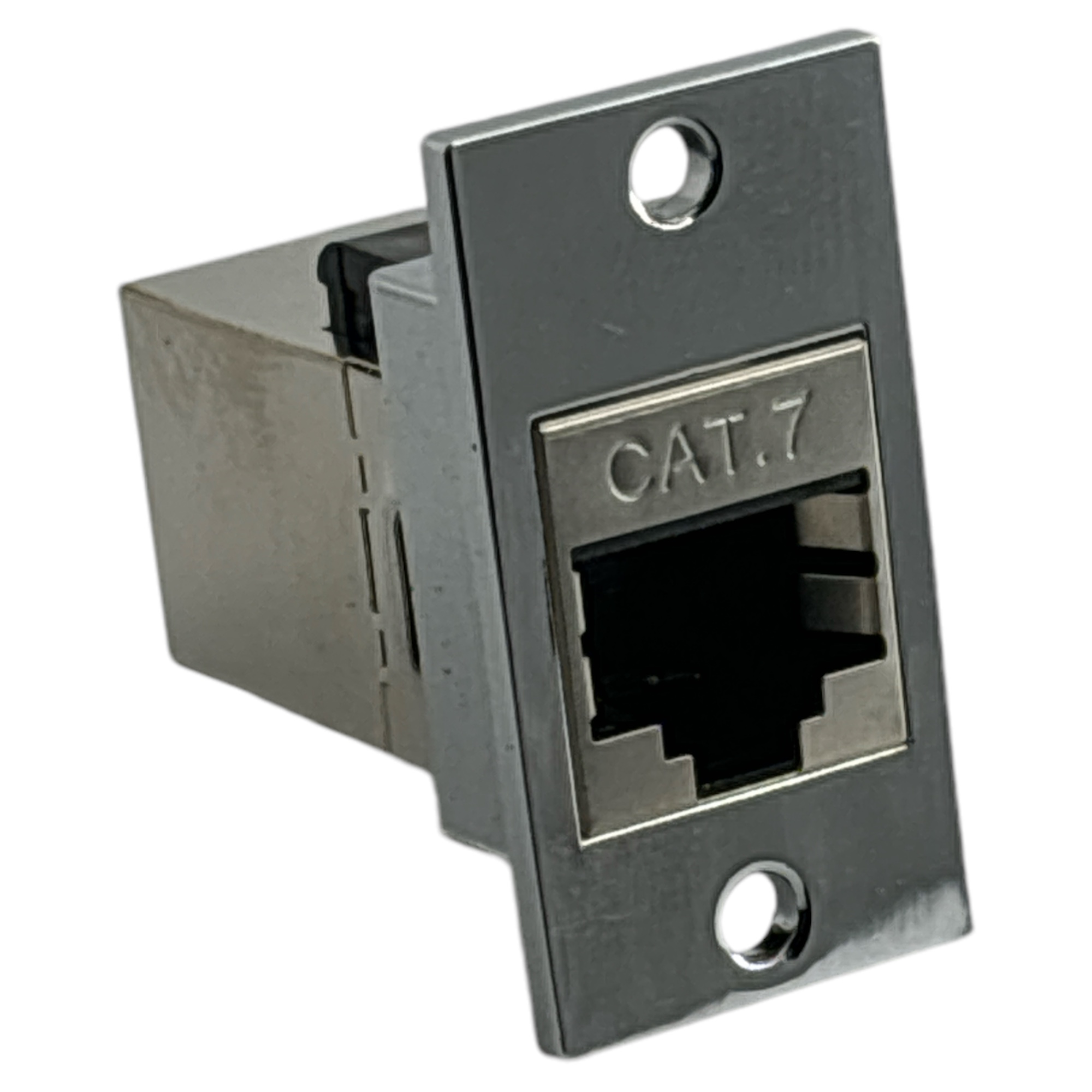Chrome plated cast assembly with your option of Cat5e, Cat6, Cat6a or Cat7 keystone coupler.
